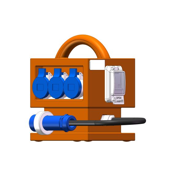 BOX type: DT-box-16 Color: Orange Incoming wire: 1 3P16A IEC plug IP67 Output: 6 small SOKE sockets IP44 Use a 2P16A small leakage